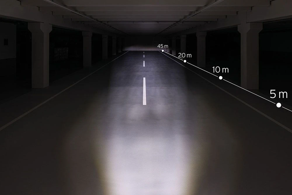«Con luz a corta distancia» significa que el campo luminoso emitido por nuestros faros comienza directamente un metro por delante de la bicicleta.