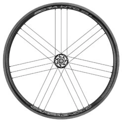 - Llanta 100% de fibra de carbono de alto módulo: La llanta está hecha de fibra de carbono unidireccional para la suavidad característica de Campagnolo