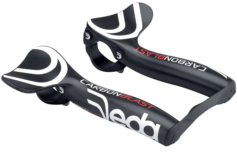 Carbon Blast de DEDA Elementi es un accesorio de manillar aerodinámico que transforma las bicicletas de carretera en bicicletas de triatlón o contrarreloj. Pesa 226 g y se adapta a manillares de 31,7 mm de diámetro.