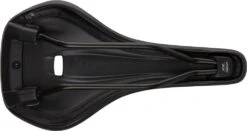 - Alivio eficaz – El canal de alivio extremadamente profundo, que está rebajado hacia atrás, se abre en una abertura en el punto más bajo. La construcción combina todas las ventajas de un sillín perforado sin las posibles desventajas (carcasa de sillín muy rígida) y consigue un alivio especialmente elevado en la sensible zona del perineo. Una presión excesiva en esta zona suele provocar molestias y entumecimiento en la zona genital.