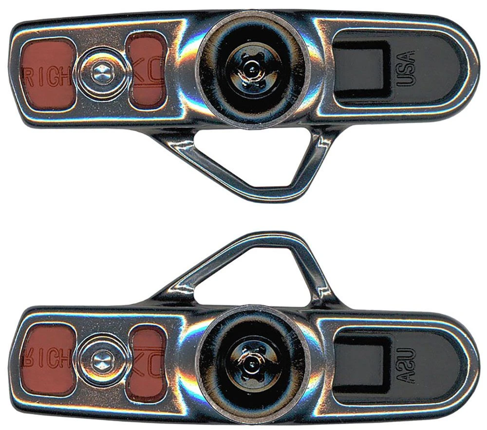 Las pastillas de freno Campi Super Record están hechas de aluminio forjado de alta calidad y tienen un ajuste de pivote doble en el que se montan las pastillas de freno Dual Compound. Las pastillas de freno rojas y negras son adecuadas para todas las condiciones meteorológicas.