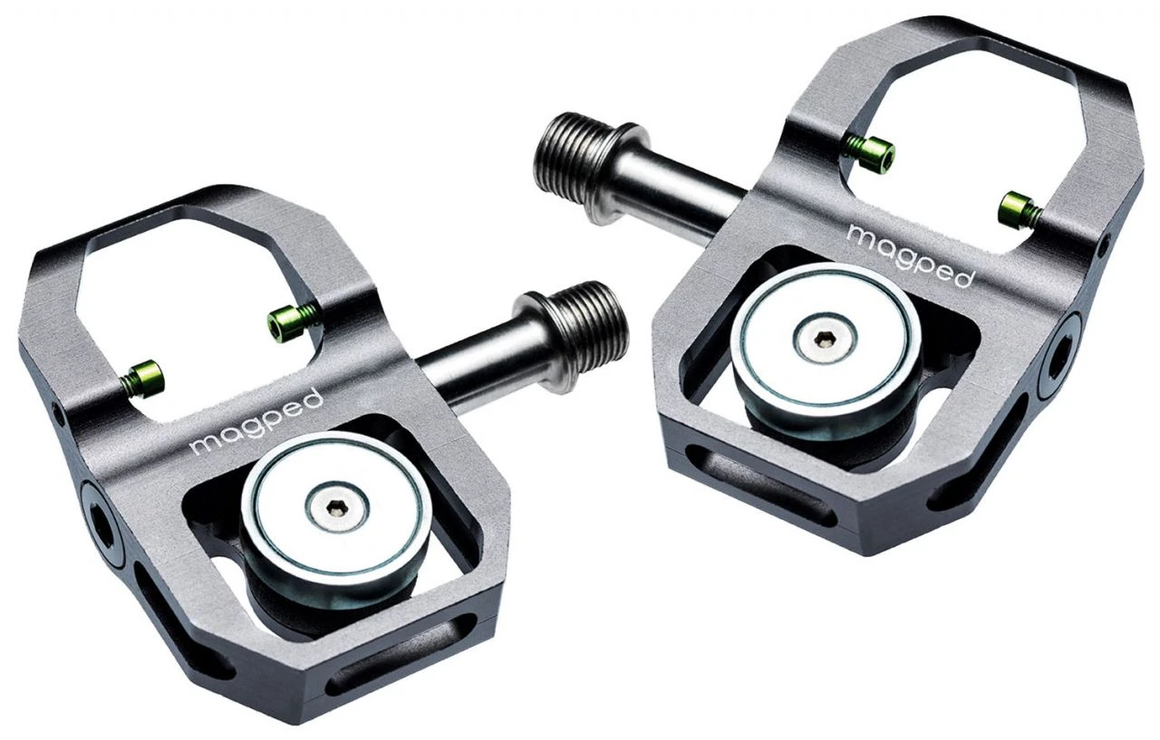 - Tecnología: El pedal magped está equipado con 3 rodamientos sellados de tipo industrial de alta calidad. Los cojinetes se pueden cambiar si es necesario. El imán de neodimio de alto rendimiento es ajustable mediante una unidad de amortiguación de polímero integrada.