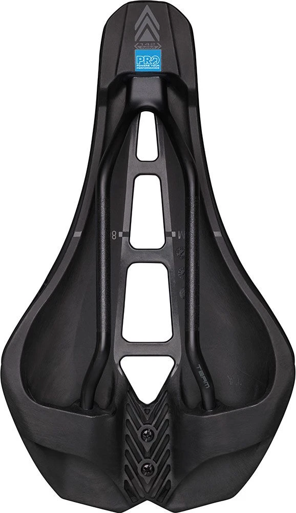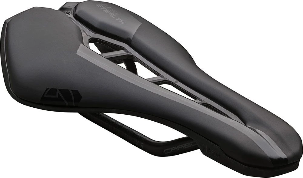 Una base de polímero reforzado con carbono, asentada sobre raíles de carbono y cubierta por un ligero acolchado de EVA, rematada por una suave cubierta de PU, produce un sillín de rendimiento rígido; disponible en versiones de 142 y 152 milímetros de ancho.