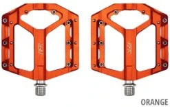 Los pedales de plataforma RFR SL 2.0 de alta calidad mecanizados por CNC, hechos de aluminio, con un diseño agresivamente plano y un bajo peso de sólo 312 g / par. Los pernos reemplazables y la gran superficie de agarre del soporte garantizan el mejor agarre y seguridad, y el eje de Cr-Mo con cojinete industrial de triple sellado con casquillo LSL para una larga vida útil.