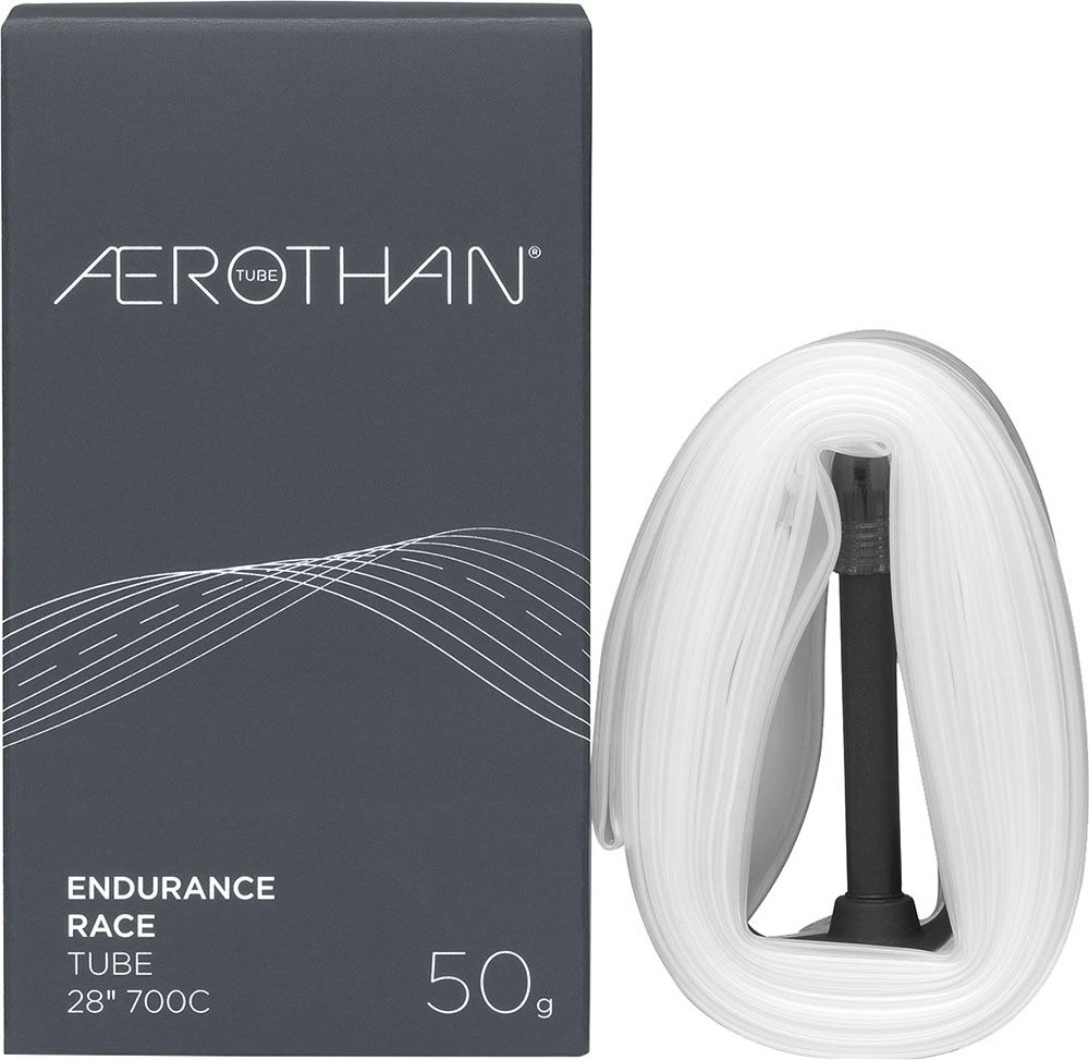 En comparación con las cámaras de butilo, se puede conseguir un ahorro de peso de 100 gramos y más en toda la bicicleta. Puede confiar en la Aerothan Tube Race Endurance no sólo para una excelente protección contra los pinchazos, sino también para los descensos: Sigue siendo absolutamente resistente al calor incluso durante varias frenadas de emergencia con frenos de llanta en rápida sucesión.