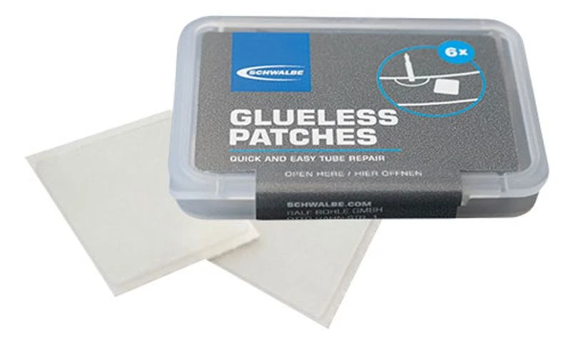 Con los parches autoadhesivos Glueless Patch de Schwalbe, un agujero en la cámara de aire se repara rápida y fácilmente.