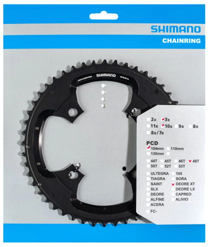 Plato de repuesto Shimano para los platos y bielas de trekking Deore XT FC-T8000 de 10 velocidades con 48/36/26 dientes y anillo protector de cadena.