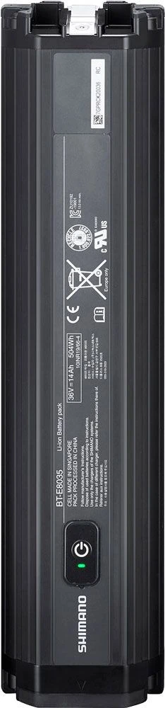- Diseñada específicamente para el sistema SHIMANO STEPS, la BT-E8035 se integra sin problemas en el tubo diagonal y tiene una capacidad de 504 Wh