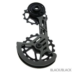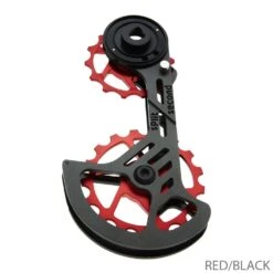 - El producto consiste en una jaula de carbono y dos rodillos de cambio de aluminio 7075 (14 y 17 dientes) con rodamientos cerámicos totalmente sellados.