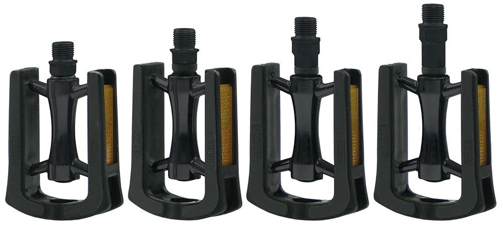 Estos pedales se utilizan raramente, pero todavía tienen su lugar. El eje corto es adecuado para los ciclistas con un tamaño pequeño que puede correr en una posición de los pies en paralelo. Por lo tanto, el llamado factor Q es menor. Especialmente en combinación con una distancia entre los huesos del asiento y una anchura de cadera más estrecha, tiene sentido estar con los pies lo más cerca posible.