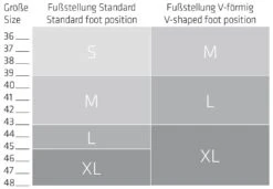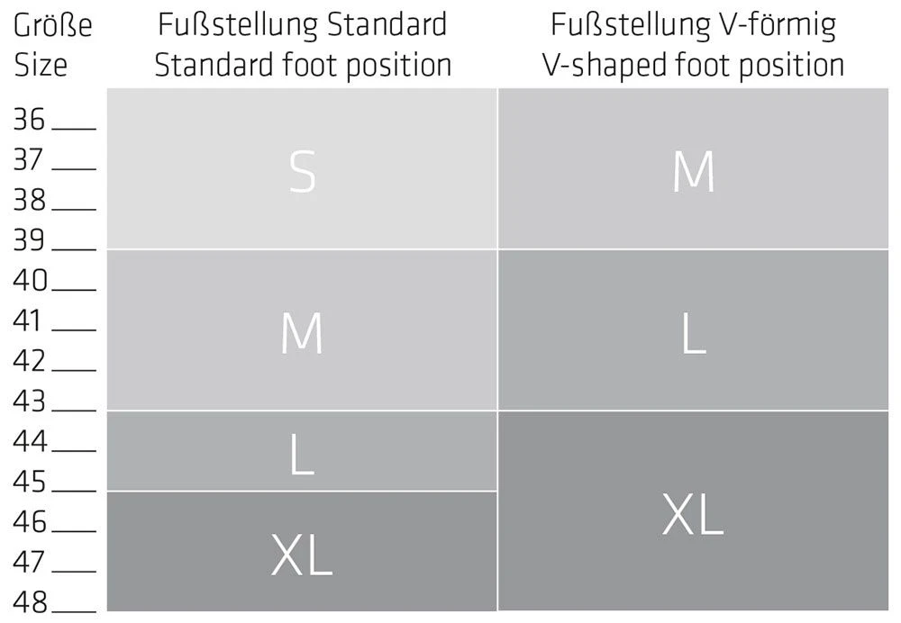 La superficie de contacto de nuestros pedales es siempre horizontal. Varios vendedores de productos supuestamente ergonómicos ofrecen pedales o zapatos con un ángulo preinstalado el llamado V-wedge. En este caso, el pie se eleva ligeramente por la parte interior. Este concepto es muy controvertido entre los expertos. El ser humano camina desde hace millones de años sobre una superficie plana. Incluso si el movimiento de pedaleo para el desarrollo biomecánico humano es todavía bastante nuevo, por lo que el ángulo del pie es un nivel muy individual. Por lo tanto, es probable que haya aún más personas que necesitan una cuña en la dirección opuesta. La alineación de los pies se hace mejor en la zapatilla y mejor con plantillas.
