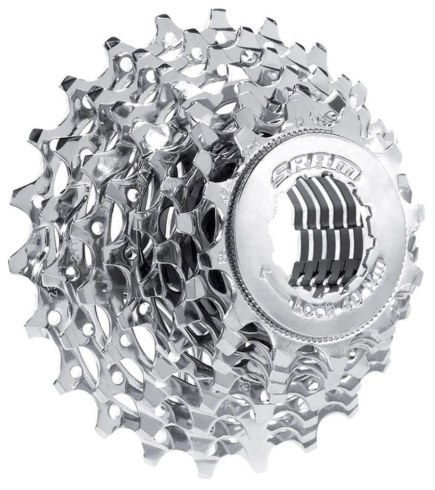 Tecnología de cassette Sram optimizada para el ciclismo de montaña. Casete PG-850, más duradero y potente gracias al perfil adaptado del piñón y a las ayudas al cambio para un cambio rápido y fiable con sistemas de cambio indexados.