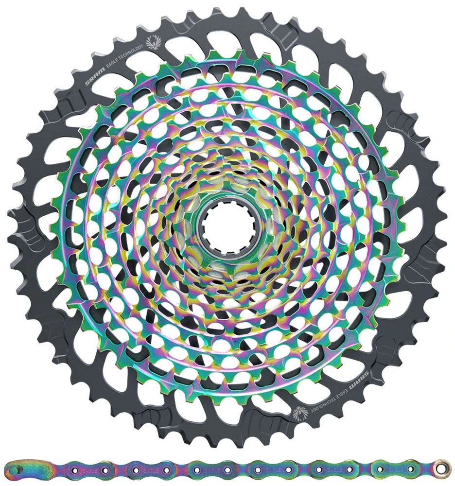 - El sistema de colores Eagle permite que el casete y la cadena expresen el carácter exacto de la bicicleta. En Oro, Arco Iris y el nuevo Cobre