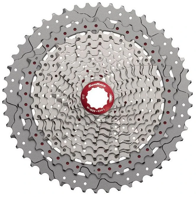 El casete de alta calidad CSMX8 de 11 velocidades de SunRace es adecuado para los cuerpos de rueda libre Shimano MTB HG. Con Fluid Drive Plus para un cambio de marchas fiable y suave incluso bajo carga.