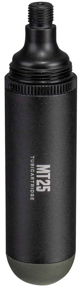 Kit de reparación sin cámara de Topeak en el formato de un cartucho compacto de CO₂. Puede utilizarse solo para reparaciones sin cámara o en combinación con un inflador de CO₂ para inflar los neumáticos al mismo tiempo. El kit MTB contiene un escariador/perforador de tapones de 3,5 mm de acero inoxidable y cinco tapones de 3,5 mm x 5 cm.