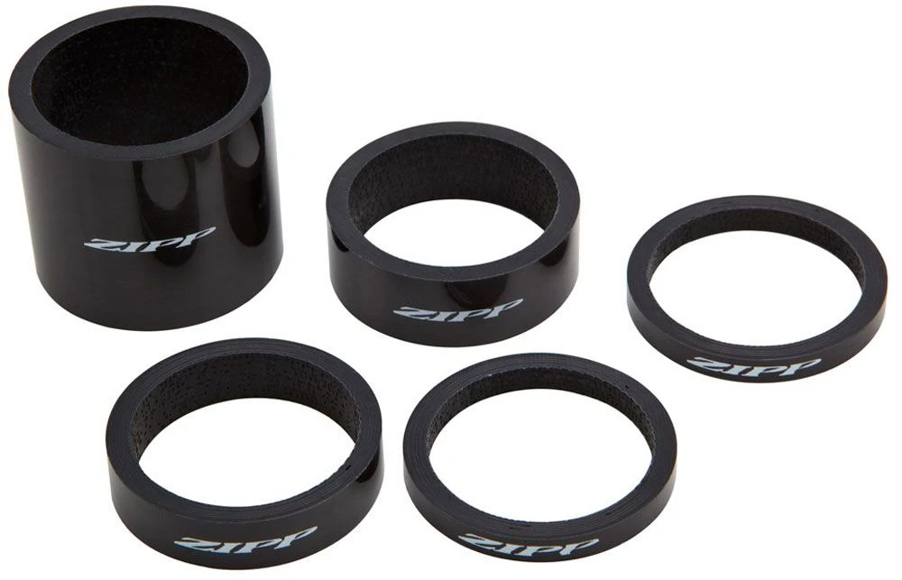 Juego de espaciadores de carbono de 1 1/8″ con letras Zipp en cuatro tamaños diferentes – 4mm x 2 / 8mm x 1 / 12mm x 1 / 30mm x 1.
